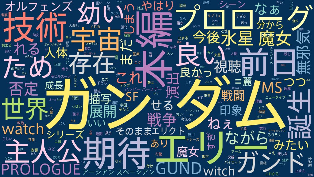初めてのガンダムシリーズの視聴だから分からない事もたくさんあったけど、とにかく映像が綺麗で戦闘シーンもワクワクした 難しい話で全部は理解しきれなかったけど、楽しめるまでは頑張って視聴していこうと思う