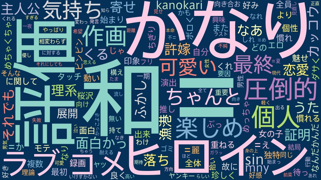 22夏のラブコメではぶっちぎりに面白かった。 ヒロインたちは全員エロ可愛いし、それをちゃんと作画、演出で魅せてくれたなあってビンビン感じた。 1期ではかなりボロくそ叩かれてた和也の印象もかなり良くなったんじゃないかな。ダサくてモテない奴なりに自分から動いて、恋愛に向き合おうとする姿は斜に構えて興味無いフリしてるヤツらの何倍も好感が持てた。そんなわけで(ヤンキーゴミ拾い理論かもしれないが)和也を好きになれたことがこの作品を楽しめた要因ではあると思う。結局男性向けラブコメで重要なのは男の方なんだよなあ。