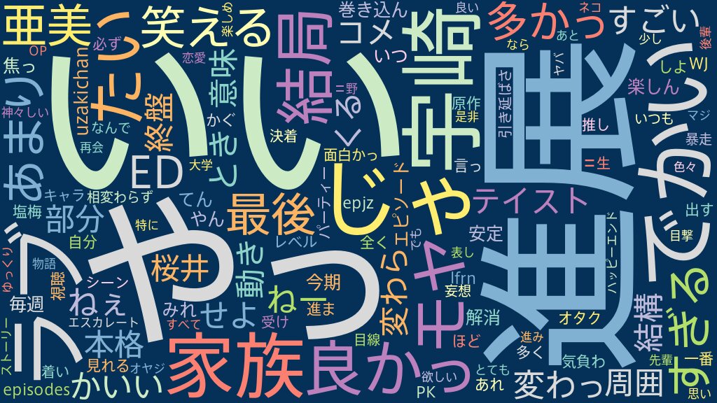 テイストは変わらずだけどラブコメのラブの部分を周囲が本格的に進展させようとしてくるという意味では結構動きがある2期だったね。終盤の桜井と宇崎の家族を巻き込んでのエピソードは良かった。いつまで焦ったいことやってんやんというモヤモヤは結局今期も解消されずだけど、安定感はある作品だったので毎週楽しんでみれたね。