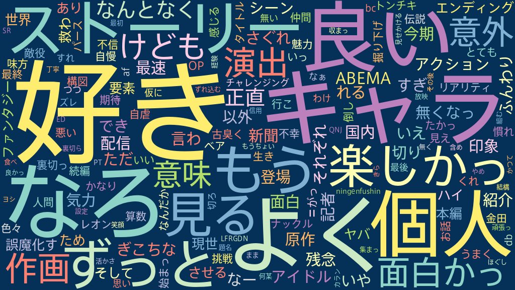 かつて何某かで裏切られた経験のある4人が集まって、信用しきらないままPTを組む。 その設定がずっと活かされていたのが個人的に良かった。 作画もうちょい頑張って…とは思ったけども、放映がずれ込むこと無く収まったのでヨシ。 カランが好きでしたね。 EDで蝶を食べた…と見せかけるのも、その後の笑顔含め好きだったw