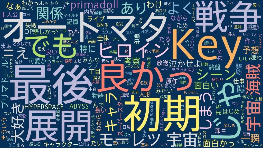 Key原作 という感じがいい意味でも悪い感じでもした感じがする。最後泣かせようとするとことか。歌ってるの良かったしアルバムとか出る?