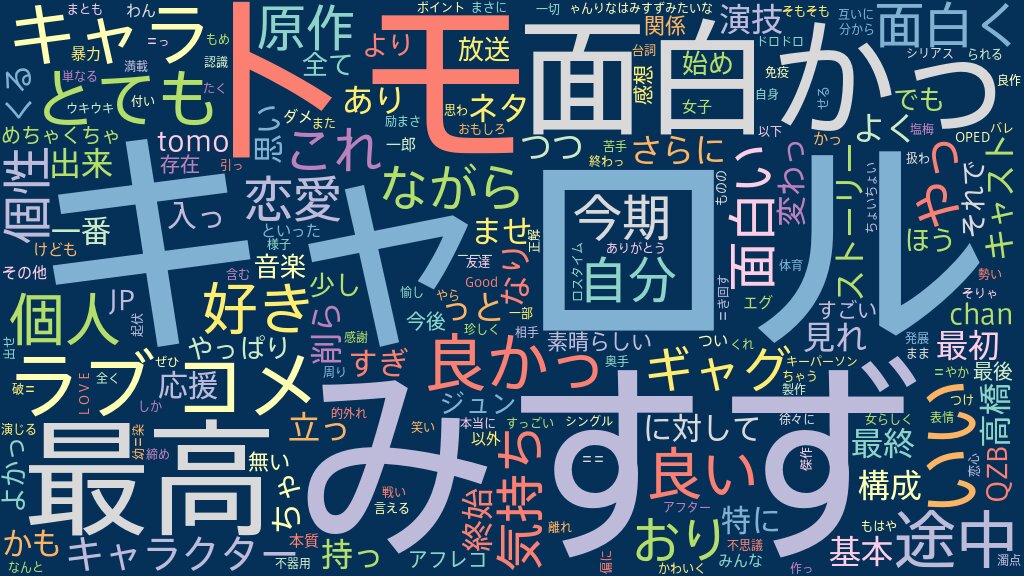 今期最大のダークホース。 遠藤瑠香さんがモブ役で出てるから…という理由で見始めたけど、ジュンとトモのちぐはぐだけど少しずつ進展していく恋路から目が離せませんでした。 9話のキャロル、11〜12話のみすず等、メイン2人を取り巻く友人たちにもしっかりスポットライトが当たる回が用意されており、キャラへの感情移入も容易でした。 よかった!!